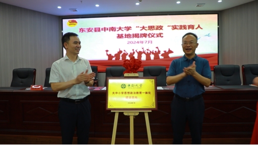 在东安县设立“大思政”实践育人基地,是推动形成“资源共享、优势互补”校地融合新格局的有益探索,希望校地双方持续深化合作、优化组织互动,为培养高素质人才“架梯搭桥”。