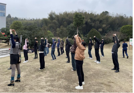中午,在美人谷品茶谈笑,学习中国传统健身功法“八段锦”,老师们沉浸式体验,在锻炼中愉悦身心,感受“千年长寿操”的独特魅力。