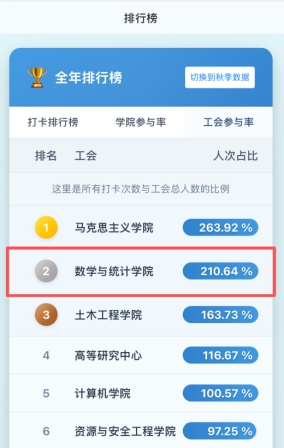 学生全年参与率达449.75%,居全校第一;工会全年参与率达210.64%,位列全校第二。这份优异成绩充分彰显了学院将体育精神深度融入“三位一体”铸魂育人工程之显著实效,体现出立德树人全过程的坚定步伐与创新实践。