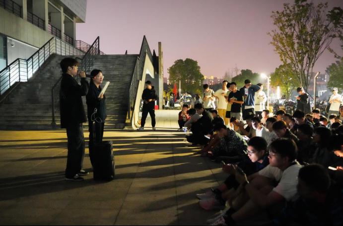 在指导老师的带领下,同学们把握节奏、音准和情感,互相配合,力争演绎出最好的效果。男生嗓音雄浑,表达直率滚烫的爱国之情;女生清音婉转,抒发对祖国的温情与敬意。指挥者与领唱者更是热血澎湃,为了共同演绎好这首歌,彼此协作,反复推敲,希望共筑和声之美,并用承载无数英烈壮志豪情的《精忠报国》,激励吾辈奋勇向前。激昂的歌声吸引了众多路人驻足观看,他们也被这热情所感染。同学们用歌声表达对祖国的热爱,“我愿守土复开疆,堂堂中国要让四方来贺”,这份责任在歌声中愈发清晰。