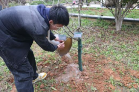 接下来的步骤就显得格外简单,志愿者们将小树抬到挖好的深坑中,进行填土工作,一颗小树就这样顺利种好了。志愿者们给自己亲手种植的小树挂上专属的领养牌,满满的成就感涌出心头。