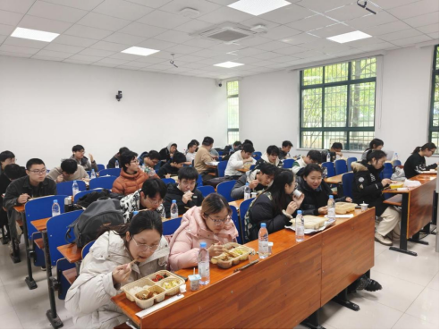 考试期间,学院在数理楼专门设立后勤保障服务点,不仅提前为有需求的考生预订暖心盒饭,确保学子考试期间饮食安全、营养均衡,还协调专用教室作为午休场所,为考生营造安静舒适的休整环境。