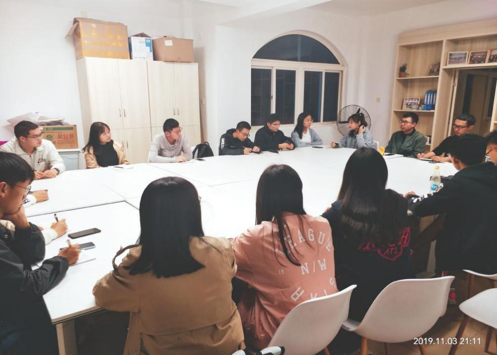 11月4日晚21:00,数统院19级辅导员王孟正、心助会会长部长团、19级各班心助队队长在南六舍活动室集合,开展心理健康工作交流会,旨在加深心理委员对心理健康工作的了解,更好地为同学们的心理健康保驾护航。