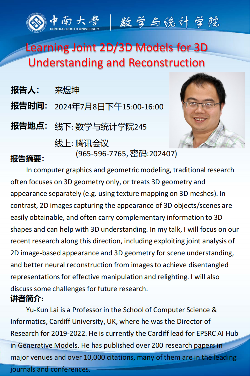 本次研讨会旨在汇聚智能图形学和计算及交叉领域的专家学者,分享最新研究成果,探讨前沿技术及未来发展方向,促进学术交流与合作。